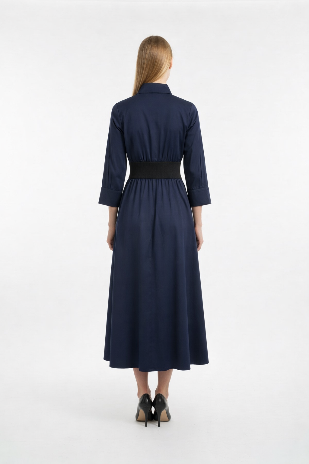 The Eleanor Dress is all about clean structure with comfort built in. It has a shirt-style top with a front zip that runs through the length, making it easy to wear and easy to style. The elasticated waist pulls the look together without feeling tight, giving you shape while still letting you move freely.